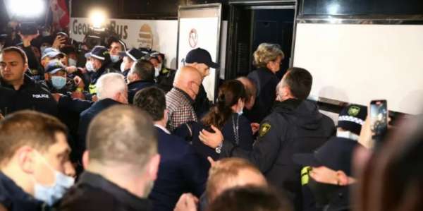 Сторонники экс-президента Михаила Саакашвили сорвали праздничный ужин в ресторане и забросали яйцами здание гостиницы, где поселился журналист.