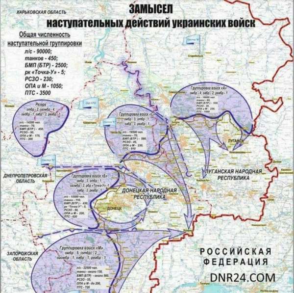 В целом, эксперты рассматривают еще несколько вариантов наступления ВСУ помимо того, о котором говорил Алексей Леонков. Против 1-го АК (милиции ДНР) для главных ударов выбраны 3 или 4 направления. Во-первых, удар в стык со 2-м АК (милиция ЛНР) на Горловку. Во-вторых, наступление вдоль северного и южного обводов Донецка, с его последующей блокадой. В-третьих, наступление из района Волновахи (удар в зону оперативной пустоты) в направлении Старогнатовки и Краснополья, с выходом на государственную границу с РФ. Против ЛНР ожидается наступление из района Лисичанска на Стаханов и Алчаевск. Второй и третий удары предвидятся из района населённого пункта Счастье вдоль западного и восточного обводов Луганска, с дальнейшим его блокированием. Кстати, сейчас в районе поселка Счастье спецслужбы Украины проводят операцию по зачистке района от предполагаемой агентуры ЛНР.