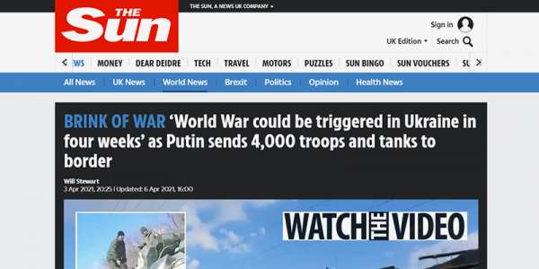 Sun приводит мнение "российского военного эксперта" Павла Фельгенгауэра (отчима небезызвестной журналистки "Эха Москвы" Татьяны Фельгенгауэр), который посоветовал "позвать психоаналитика", чтобы точно определить намерения Москвы. По мнению этого либерального оппозиционера, Россия может начать войну "уже через месяц".