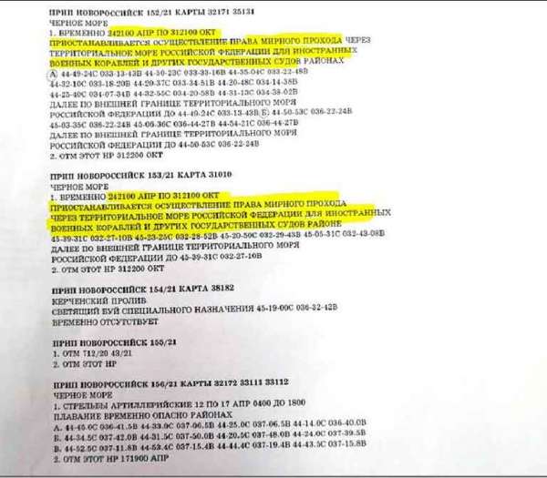 Таким образом, корабли ВМС, морской охраны Украины, а также гидрографические суда, таможенники, рыбоохрана не могут, как выйти, так и зайти в Азов. Такой же «запрет» касается любой третьей страны.
