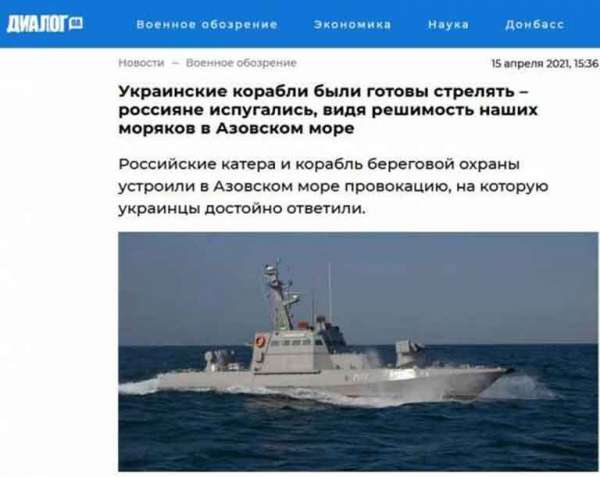 В свою очередь ВМС Украины заявили о том, что катера Пограничной службы ФСБ России вчера воспрепятствовали выполнению задач украинскими кораблями в Азовском море. Инцидент произошел в ночь на четверг, 15 апреля.