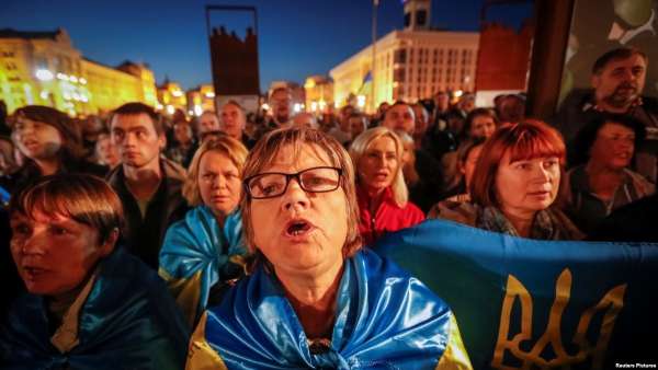 Рассуждать о настроениях в украинском обществе было бы пошло, если б нам постоянно не внушали мысль, что есть некое маргинальное националистическое меньшинство, под которое якобы «прогнулся» Зеленский. Из этого следует, что произошла ошибка и стоит жителям незалэжной на выборах выбрать другого президента — мудрого и волевого — как всё переменится. Правда? А ничего, что это самое молчаливое большинство поддерживает прозападный курс Украины? При чём тут националисты, Зеленский, если, в конце концов, курс на вступление в Евросоюз и НАТО закреплён в Конституции Украины?