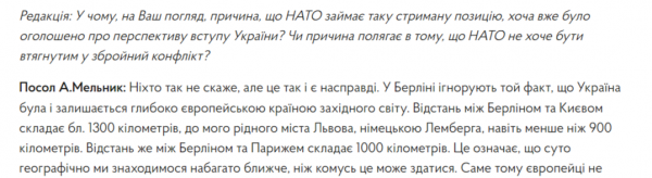 Мнение было высказано в контексте того, что Германия де-факто не разделяет стремления Украины в НАТО.