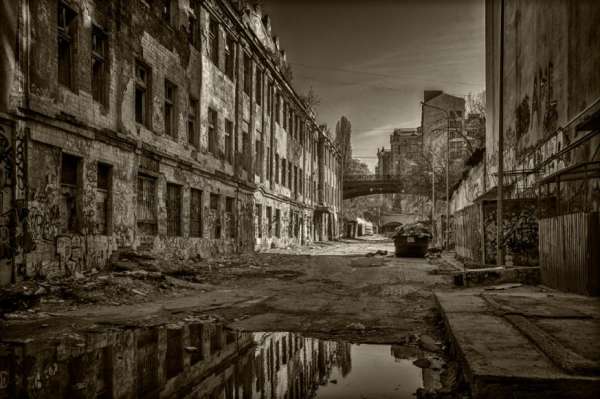 Несколько месяцев тому на «Альтернативе» появилась примечательная фотография Одессы: Деволановский спуск, если стоять спиной к администрации торгового порта. Он реально ужасен. Смерть и разрушение поселились в городе. У них пока мало сил, чтоб накрыть его весь, но остатки исчезающих одесситов уже слишком слабы, чтоб навести там порядок. В своей жизни я лишь однажды по нему прошелся ― летом в надвигающихся сумерках, и это было жутковато. Даже сегодня, проходя по Греческой или Бунина и глядя с мостов на эту постапокалиптическую улицу, передергивает от мрачного ощущения, что под тобой инородное пространство. Но сталкером быть не хочется.