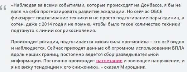 По словам ее спецпредставителя на переговорах в Минске по Донбассу Родиона Мирошника, Киев продолжает стягивать на Донбасс большое количество военной техники и живой силы.