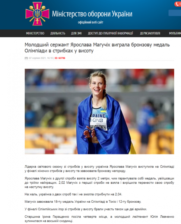 При этом Министерство обороны Украины тут же вызвало легкоатлетку Магучих – младшего сержанта Вооруженных сил Украины – на «воспитательную беседу». Замминистра обороны Украины Анна Маляр сказала, что Мария Ласицкене — действующий капитан Вооруженных сил России, и Ярослава Магучих должна будет объясниться с руководством Минобороны Украины насчет своего «неподобающего поведения с представителем страны-агрессора, кадровым офицером Российской армии». При этом Маляр запуталась в званиях Магучих, назвав ее младшим лейтенантом.