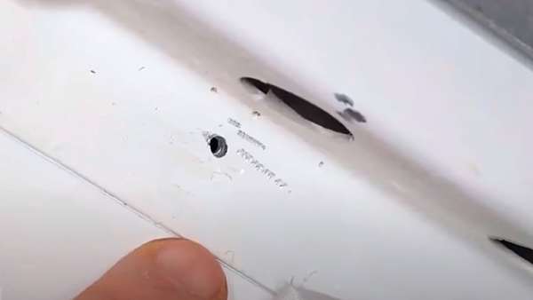 А одно отверстие пытались просверлить в шпангоуте корабля.