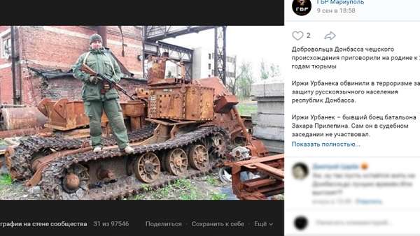 Говорят, что в прошлом у Урбанека были нелады с законом. Может, и так. Но судили-то его не за это, а за то, что участвовал в защите Донбасса от укрофашистов. Он решил поехать туда после того, как узнал, что в результате украинского авиаудара кассетными бомбами по детскому пляжу в Зугрэсе 13 августа 2014 года погибли 15 человек, в том числе четверо детей.