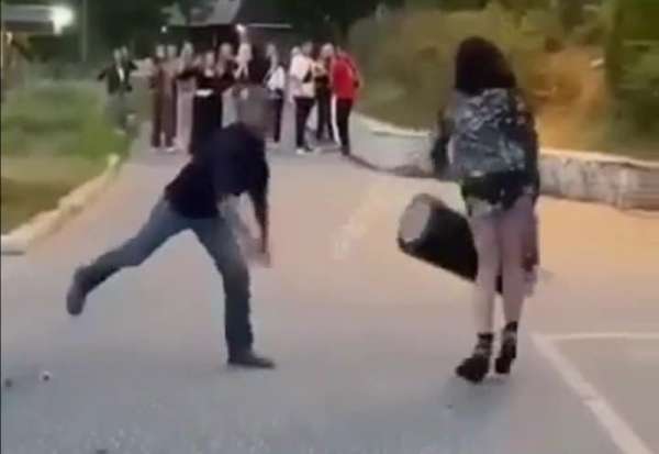 В сети обнародовано видео, где одессит бросает мусорную урну в молодую девушку, а затем отправляет её в нокаут. Причины конфликта неизвестны.