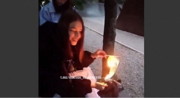 В городе Каменское Днепропетровской области 15-летнея школьница подожгла государственный флаг Украины, поясняя, что это «не мой флаг».