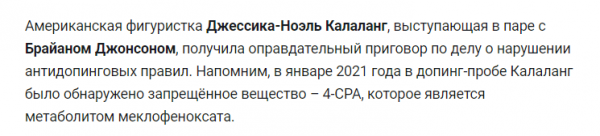 Американскую фигуристку в парном катании Джессику-Ноэль Калаланг недавно отстранили от занятий спортом из-за применения допинга.