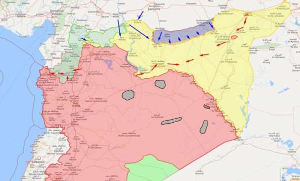 развёртывание подразделений сирийцев на трассе Эль-Камышли — Хасеке — Ракка под предлогом защиты от СНА, перехватывание логистического коридора у курдов;