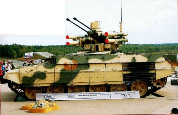 Российская разработка создана на базе танка Т-72. БМПТ обслуживается экипажем из пяти человек.