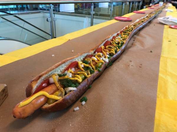 Буквально накануне «славного» праздника стало известно, что Роганский мясокомбинат, расположенный в первой украинской столице ― городе Харькове, приготовил самый большой на Украине хот-дог. Руководитель Национального реестра рекордов Украины Лана Ветрова похвасталась, что харьковская сосиска длиной 2 метра и 15 сантиметров побила предыдущий рекорд среди колбасных изделий, который равнялся лишь 1 метру 83 сантиметрам.