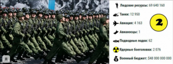 Впрочем, стоит вспомнить про рейтинг мировых армий по версии сайта Global Firepower. Его эксперты используют больший набор критериев, начиная от финансирования и заканчивая логистикой. Отмечу, что наличие ядерного оружия ими не учитывается. Свой рейтинг они формируют по принципу «чем меньше индекс мощи, тем страна сильнее». Безусловного лидера пока нет. И Россия в списке заняла второе место. На первом Штаты.