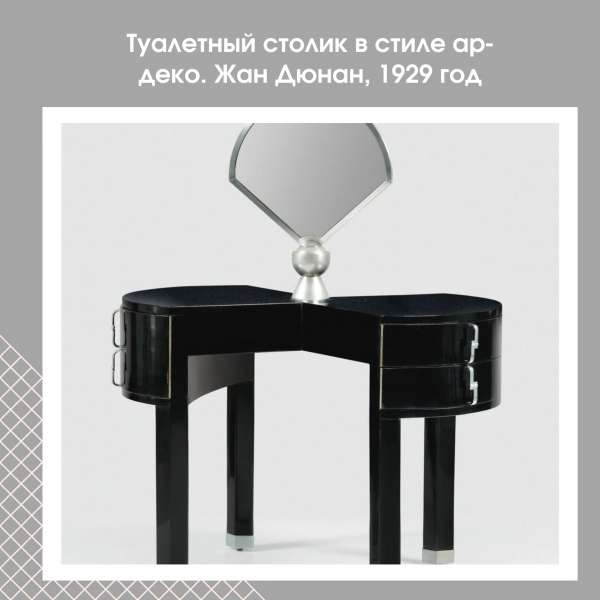 Ар-деко попытался объединить функциональность и художественный дизайн, элементы, которые совпадают с технологическими разработками в начале 20-го века. Дизайн этой эпохи был призван прославлять современную жизнь и излучать ощущение изысканности и роскоши. Стиль характеризуется темными лакированными поверхностями, акцентом на ярких цветах и высокой контрастностью.