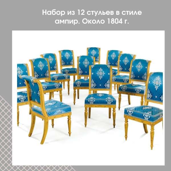 Ампир представляет собой стилистический идеал Наполеона, на который повлияла античность: Древняя Греция, Рим и Египет. Чаще всего мебель создавалась из красного дерева и имела позолоченные рамы с узорами и символическими орнаментами. Стиль ампир богато украшен и более красочен, чем предшествующие ему периоды.