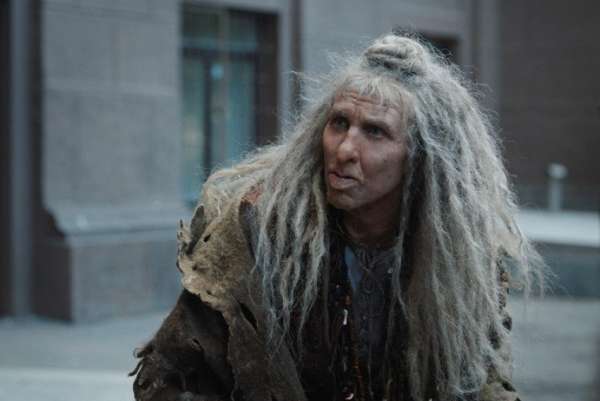 Внешность героине Яковлевой досталась по наследству от "злобной" версии. Перед нами старуха-чухонка, закутанная в грязные тряпки: патлатая, крючконосая, с роскошным горбом… Клыков, правда, у нее нет (что делает "бабушку" все-таки более симпатичной, чем ранние персонажи Милляра), зато есть омерзительно-хриплый голос, повышенная лохматость и привычка командовать. И такой набор элементов, в принципе, не случаен: режиссер Дмитрий Дьяченко специально водит зрителя за нос, чтобы тот долго не мог понять, кто из персонажей воюет на стороне добра, а кто - на стороне зла. Яга же по всем внешним признакам принадлежит к поборникам тьмы.