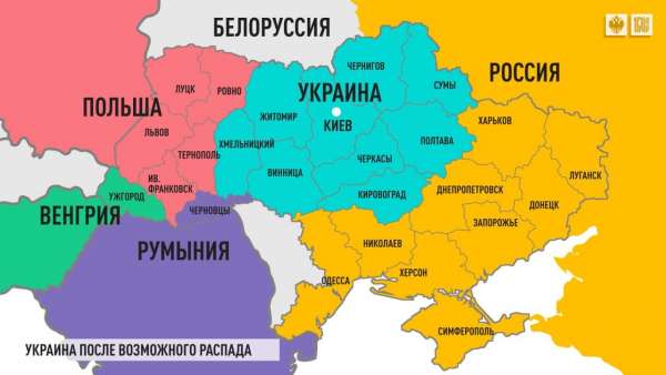 Легко представить, что произойдёт, если при военном поражении в Донбассе или внутриполитической смуте Украина начнёт разваливаться. Опыт отделившейся Новороссии тут же захотят повторить у себя обладатели венгерских, румынских и польских паспортов. А когда Украина попытается им помешать, "соотечественникам" тут же окажут братскую военную помощь соответствующие страны.