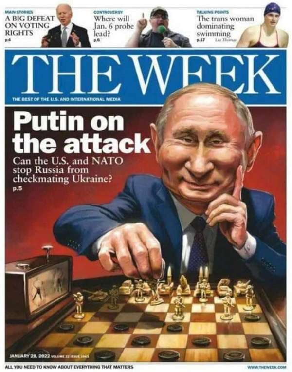 Нет сегодня в мире информационного издания, которое не писало бы о Путине. Вот эта фотография обложки «THE WEEK» говорит о Путине и обо всем остальном мире больше, чем все политологи вместе взятые.