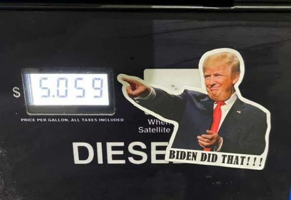 В Америке вспыхнула стикер-война против Джо Байдена: на автозаправках американцы приклеивают стикеры с портретом Байдена, на которых написано: «Я сделал это». Всему виной резко взлетевшие цены на бензин из-за заявления Белого дома об отказе от закупок российской нефти.