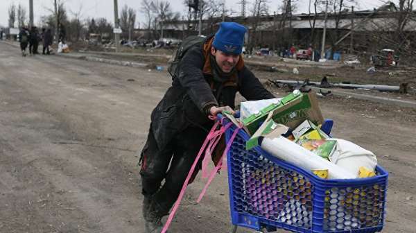 По улицам Мариуполя идут группы людей с тележками и коробками с оранжево-черной буквой Z — «гуманитаркой». Отстояв несколько часов в очереди, люди несут продукты домой. Мирная жизнь для них еще не настала, слышны разрывы, а недавнее прошлое ушло недалеко — при рассказе о днях, когда в городе шли бои, многие плачут.