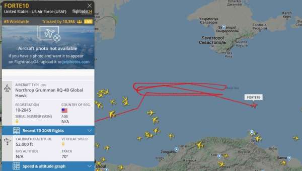 В наведении участвовали американский беспилотник Global Hawk и британский самолет дальней радиолокационной разведки RC 135. Они вообще практически 24/7 мониторят море с пространства Румынии и Болгарии.