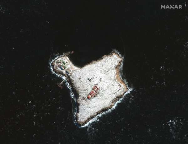 Спутниковый снимок острова Змеиный, сделанный Maxar 13 февраля 2021-го. Фото © Getty Images / Satellite image (c) 2022 Maxar Technologies