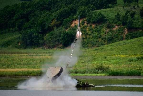 Принцип действия этого комплекса прост: вместо орудия внутри "Метеорита" уложен специальный шнур. Внутри него находится большое количество взрывчатки. Специальный реактивный боеприпас вытягивает несколько сотен килограммов взрывчатого вещества, и аккуратная прямая линия укладывается на тот участок, который необходимо разминировать. Взрыв такого количества боеприпасов гарантированно приводит к детонации противотанковых мин, что ведёт к образованию ровного коридора длиной в 90 и шириной в шесть метров.