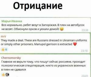 И вновь самозабвенная ложь: «Благодаря действиям украинских военных — ВСУ, разведки, переговорной группы, МККК и ООН надеемся, что удастся сохранить жизнь наших ребят. Украинские герои нужны Украине живыми. Это наш принцип».