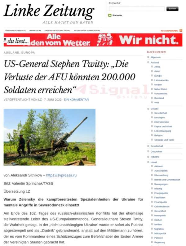 Украинская армия стремительно отступает под натиском Союзных сил России. При этом потери ВСУ могут исчисляться сотнями тысяч бойцов. Так считает бывший заместитель главы Европейского командования США генерал-лейтенант Стивен Твитти.