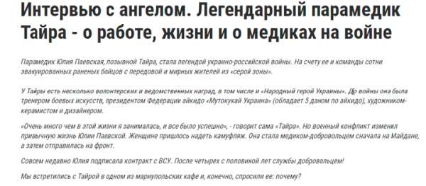 СКРИНШОТ СО СТРАНИЦЫ ОДНОГО ИЗ УКРАИНСКИХ СМИ: ТАК СОЗДАВАЛСЯ МЕДИЙНЫЙ ОБРАЗ ТАЙРЫ.