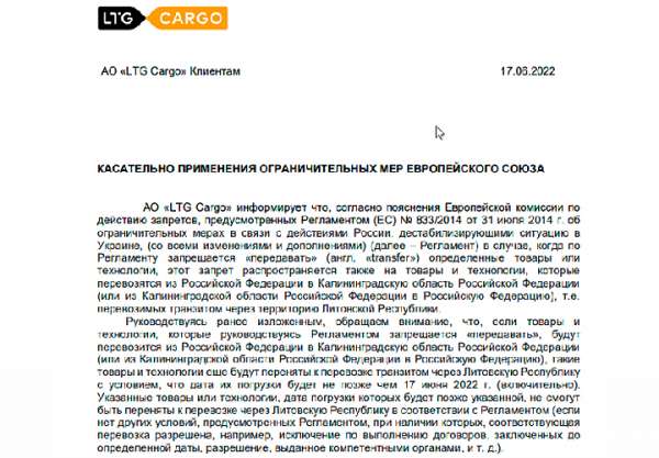 Вот и сообщение Литовской железнодорожной транспортной компании LTG Cargo, разосланное клиентам (то есть тем, кто занимается как раз отправкой и получением грузов) 17 июня, стало достоянием жителей региона быстрее, чем оно было опубликовано в Сети.
