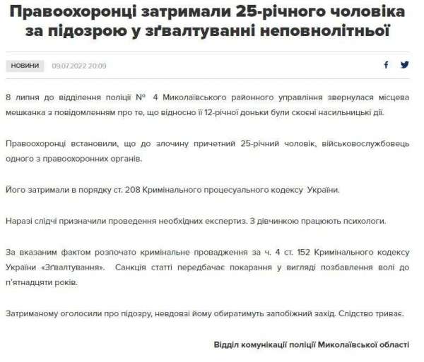 8 июля «всушник» в Николаеве изнасиловал 12-летнюю девочку: её мать обратилась в полицию.