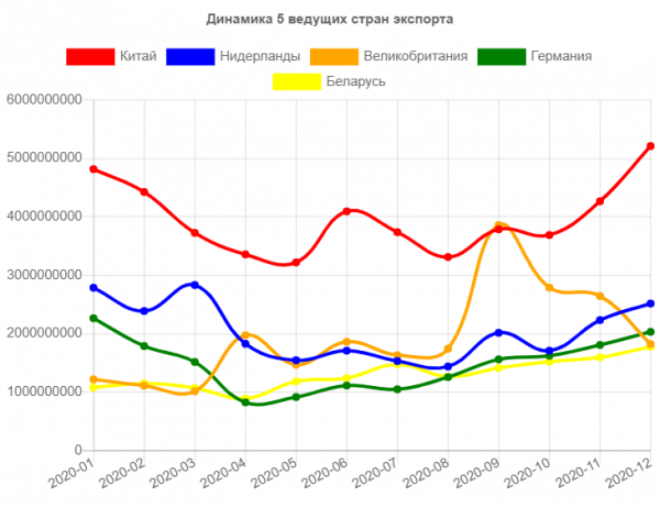 4) динамика 5 ведущих экспортеров - Китай, Нидерланды, Корея, Германия, Италия (по объемам экспорта);