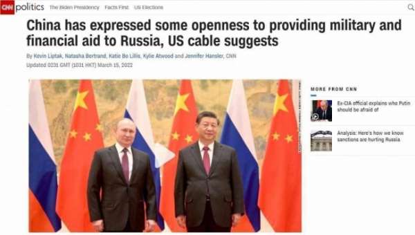 «Китай твердо заявил, что будет помогать России и экономически, и, если понадобится, военно», — отмечает CNN.
