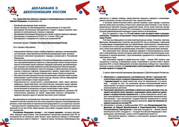 На ноябрь 2022 года ФСН уже запланировал созыв Международной Конференции по Мирной Деколонизации и Территориальному Устройству Построссийского Пространства с участием государств – членов Совбеза ООН.
