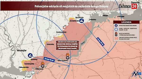 В.К. Возможно, кто-то посчитает это нереализуемым прожектом, фантазиями польских аналитиков. Однако, как мы уже знаем, ВСУ уже наносят ракетные удары по Антоновскому мосту и, по некоторым сообщениям, нанесли серьёзные разрушения.