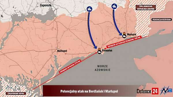 Некоторые аналитики предполагают, что после взятия Херсона лучшим решением для укровойск будет удар по Мариуполю (около 60 км) и Бердянску (около 80 км), для того чтобы разделить российские войска на две части. Проблема, однако, в том, что будет отбита только территория без какого-либо ослабления российских сил.