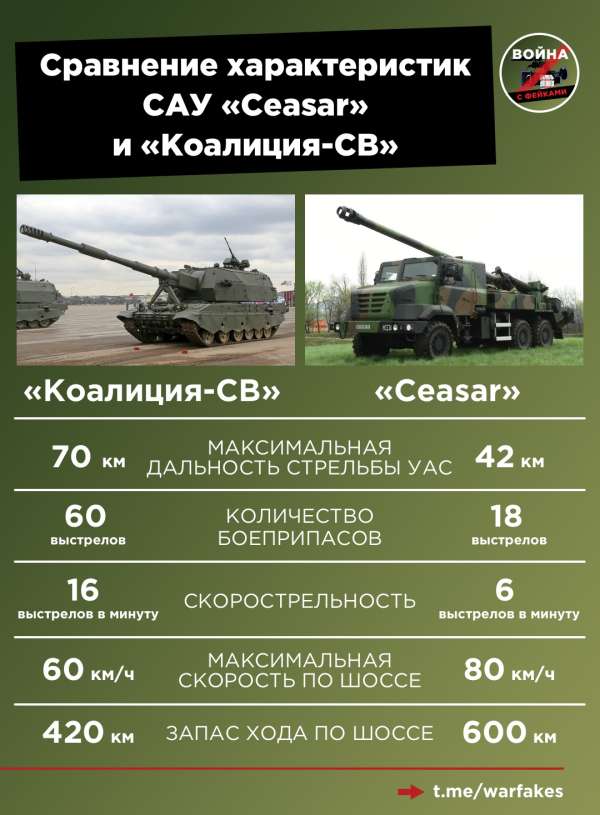 К слову, «Коалиция» способна вести огонь на дальность до 70 км, а «Цезарь» - на 42 км.