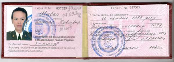 На сайте выложено удостоверение националистки, и её фотография. Согласно данным удостоверения, Шабан (Вовк) Наталья Павловна родилась 16 мая 1979 года, служебное удостоверение получено в 2020 году.