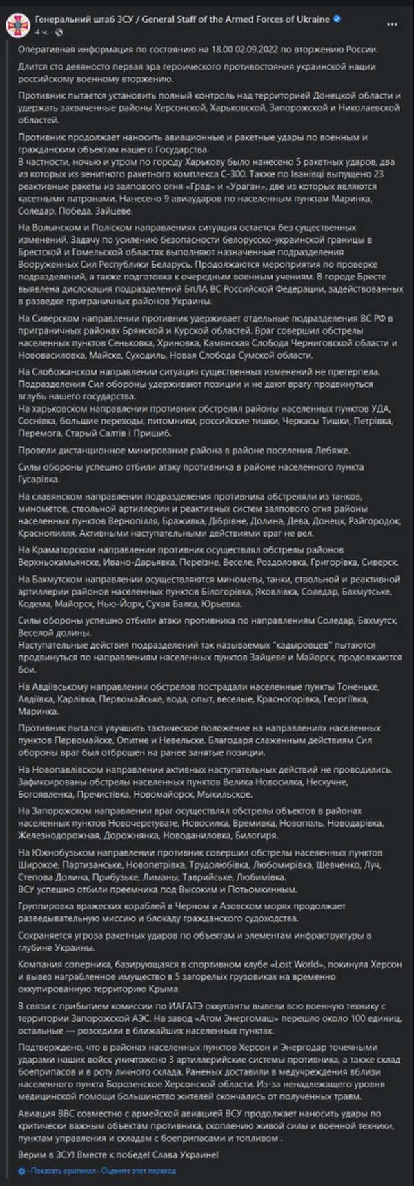 В начале августа советник главы офиса украинского президента Михаил Подоляк заявил, что каждый день 30—50 украинских военнослужащих умирают. В начале июня каждый день погибало 100—200 человек. До этого президент Украины Владимир Зеленский сообщал, что потери армии составляют 60—100 солдат убитыми и 500 ранеными в день. По его данным на середину апреля, 2500—3000 погибли, 10 000 получили ранения.
