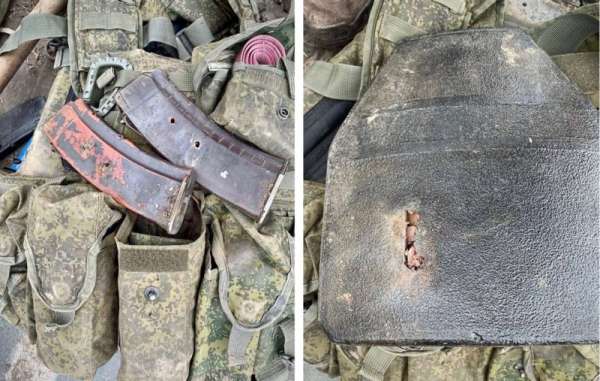 Магазины 5,45 и плита бронежилета бойца ВС РФ