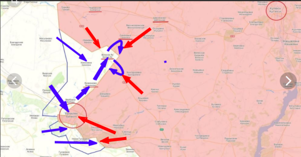 ВСУ сильно напирают в районе Балаклеи. Нагло и уверенно. При этом маски сброшены окончательно. Весь интернет обошли ролики с украинскими танками с намалеванными крестами а-ля Вермахт, а известный пропагандист Тарас Березовец под камеру снял флаг с флагштока в захваченном украми селе. Флаг представлял из себя копию Знамени Победы. Мне очень интересно, как после этого будут себя вести разные там Галкины, Гребенщиковы и Макаревичи в купе со множеством проукраински настроенных граждан России. Но речь в заметке не об этом.