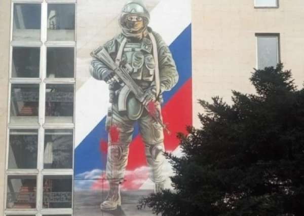 Сегодня ночью в самом центре Симферополя осквернен мурал, посвященный поддержке специальной военной операции. Потоками красной краски залито огромное изображение российского солдата, размещенное на фронтоне республиканского Главпочтамта. Главное здание ФГУП Почта Крыма находится на улице Александра Невского. Отсюда до Госсовета РК буквально три минуты неспешной ходьбы. Неподалеку Совмин и другие правительственные учреждения. Осквернить патриотический мурал в таком месте – это откровенный и наглый вызов националистического подполья.