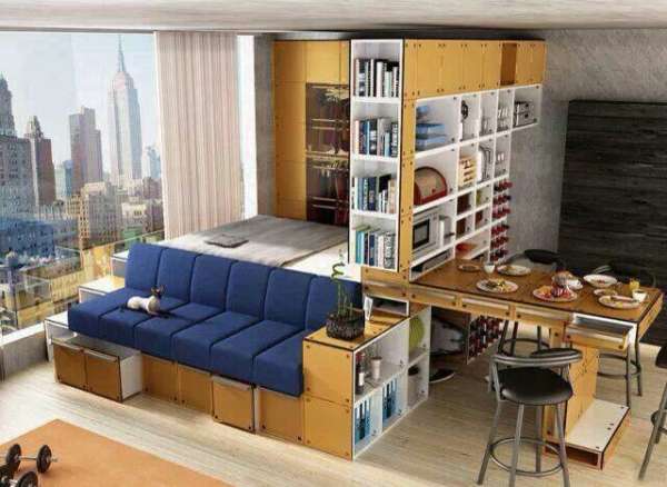 При обустройстве малогабаритного пространства нужно делать ставку не на количество предметов мебели, а на их функциональность. Милый журнальный столик в таких интерьерах легко может трансформироваться в обеденный, прикроватная тумбочка — в дополнительное место для сидения и так далее. Для совсем маленьких квартир-студий есть очень классные решения с кроватями-трансформерами, которые в собранном виде прячутся в шкаф. Есть много вариантов такой мебели, о них вам подробнее расскажет специалист, занимающийся зонированием.