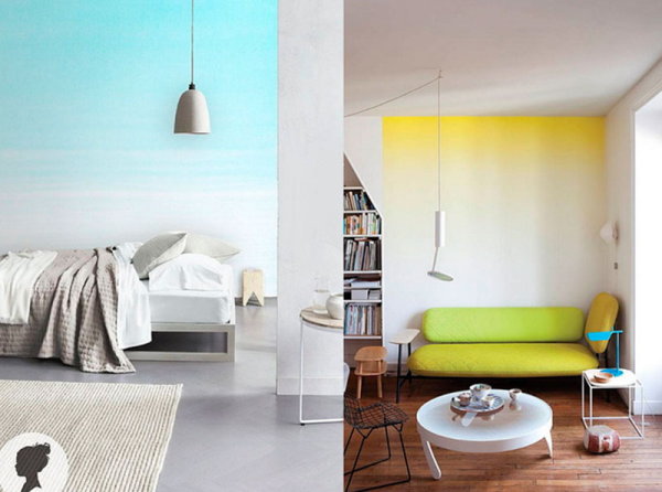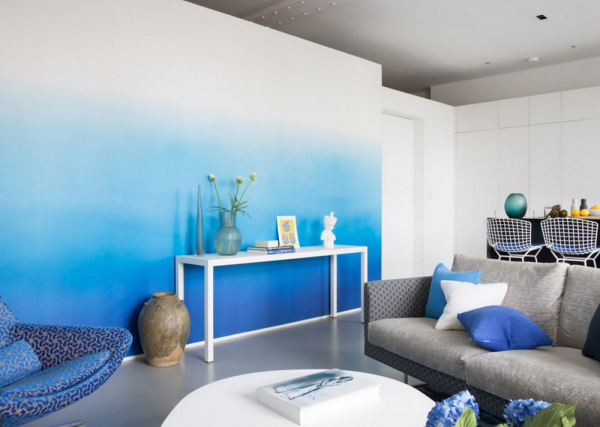 Если было принято решение менять цветовую концепцию в помещении основательно, то омбре – лучший помощник и советчик. Это лучшее спасение от серости и банальности. Благодаря такому дизайнерскому ходу вам удастся визуально поднять потолки и сделать комнату колоритнее. При правильном подборе оттенков вы сможете поселить в комнате атмосферу нескончаемой сиесты, в которую вы будете радостно возвращаться после тяжелого трудового дня.