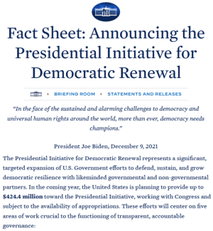 Запад все еще делает ставку на С.Тихановскую, поэтому продолжает оказывать поддержку в т.ч. возглавляемому ей «демократическому» движению. Для этого даже был организован «Саммит за демократию», на котором выступил сам Д.Байден. На нем американский президент объявил о запуске инициативы по обновлению демократии. Она направлена на «содействие иностранным государствам в развитии независимых средств массовой информации, противодействие коррупции, осуществление демократических реформ, защиту прав меньшинств, поддержку демократических выборов и продвижение новых технологий в сфере политики». Другими словами, свержение неугодных властей и установление полного контроля над действиями марионеточных правительств. Общий объем байденовской инициативы составляет 424,4 млн долларов, часть средств заложена на реализацию проектов в Беларуси.