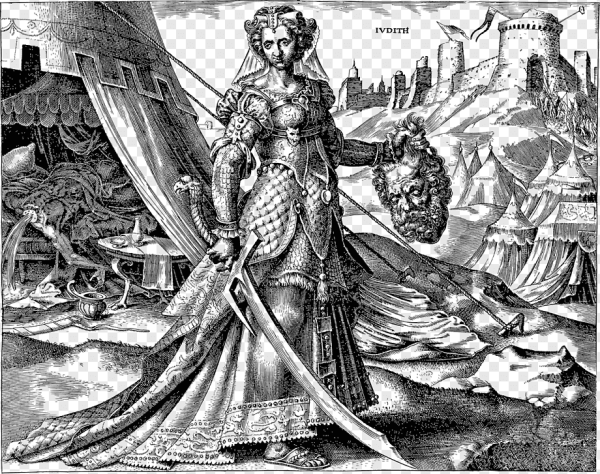 Когда ассирийцы осадили родной город Юдифи, она по «просьбе» раввина нарядилась в красивые одежды и отправилась в лагерь врагов, где своей красотой привлекла внимание полководца Олоферна, устроив ему там бурный секс. Когда он напился и заснул, она отрубила ему голову и принесла её в родной город. Лишившись своего предводителя, ассирийцы сняли осаду…