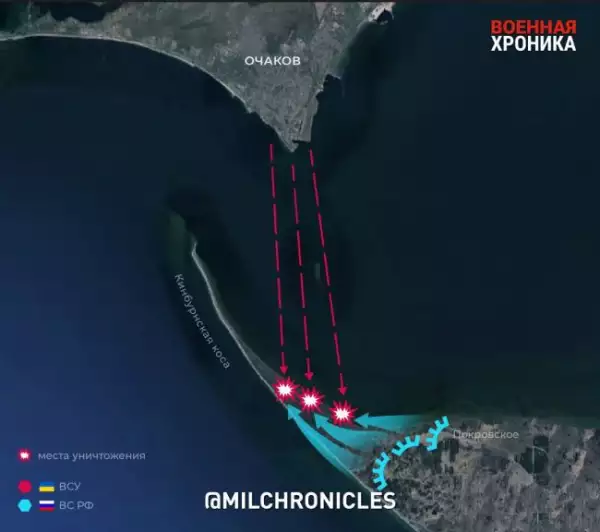 По данным компетентных источников, в рамках дополнительной артиллерийской поддержки готовящейся десантной операции на Кинбурнской косе противник намеревается применить взвод высокоточных РСЗО HIMARS, развёрнутых в Черноморске и Доброславе. Сутками ранее из этих систем был открыт огонь по опорным пунктам и ВС России в Голой Пристани, Лазурном и Скадовске. Более 90% реактивных снарядов были перехвачены дивизионами «Бук-М3».